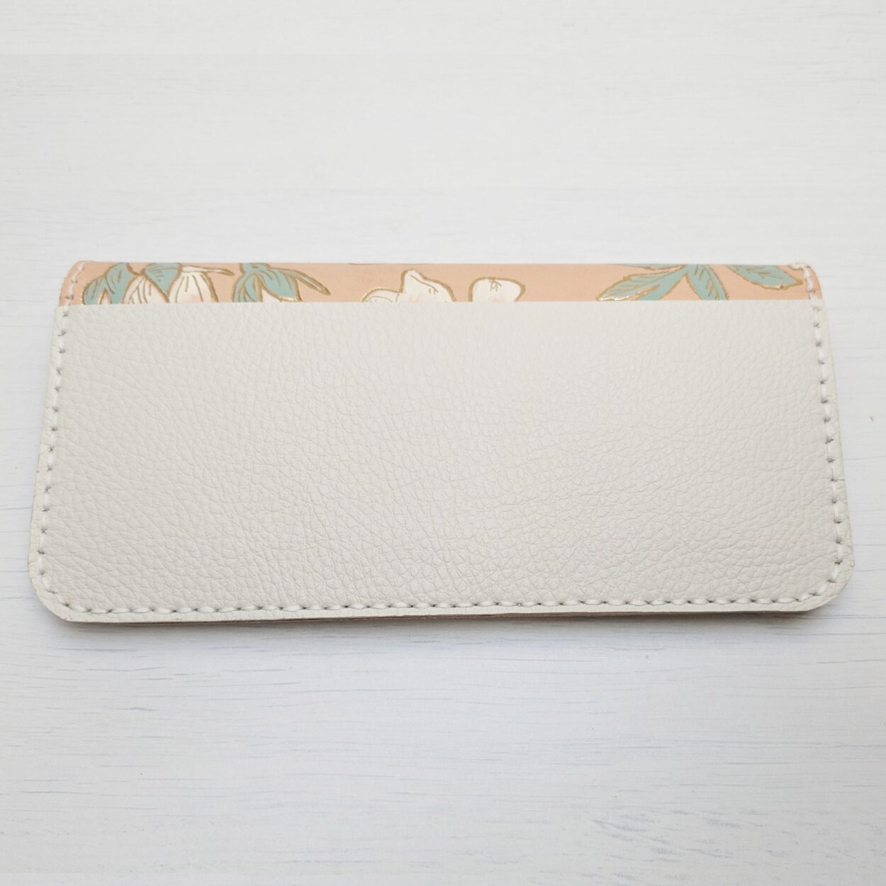 Featuring a hand painted white and peach rose floral design accented with gold detailing, this wallet keeps you organized with four card slots, an inner cash pocket and back document pocket to keep daily essentials handy. Hand stitched and fully finished with UV and water resistant coating to ensure your treasures will be kept safe for years to come.