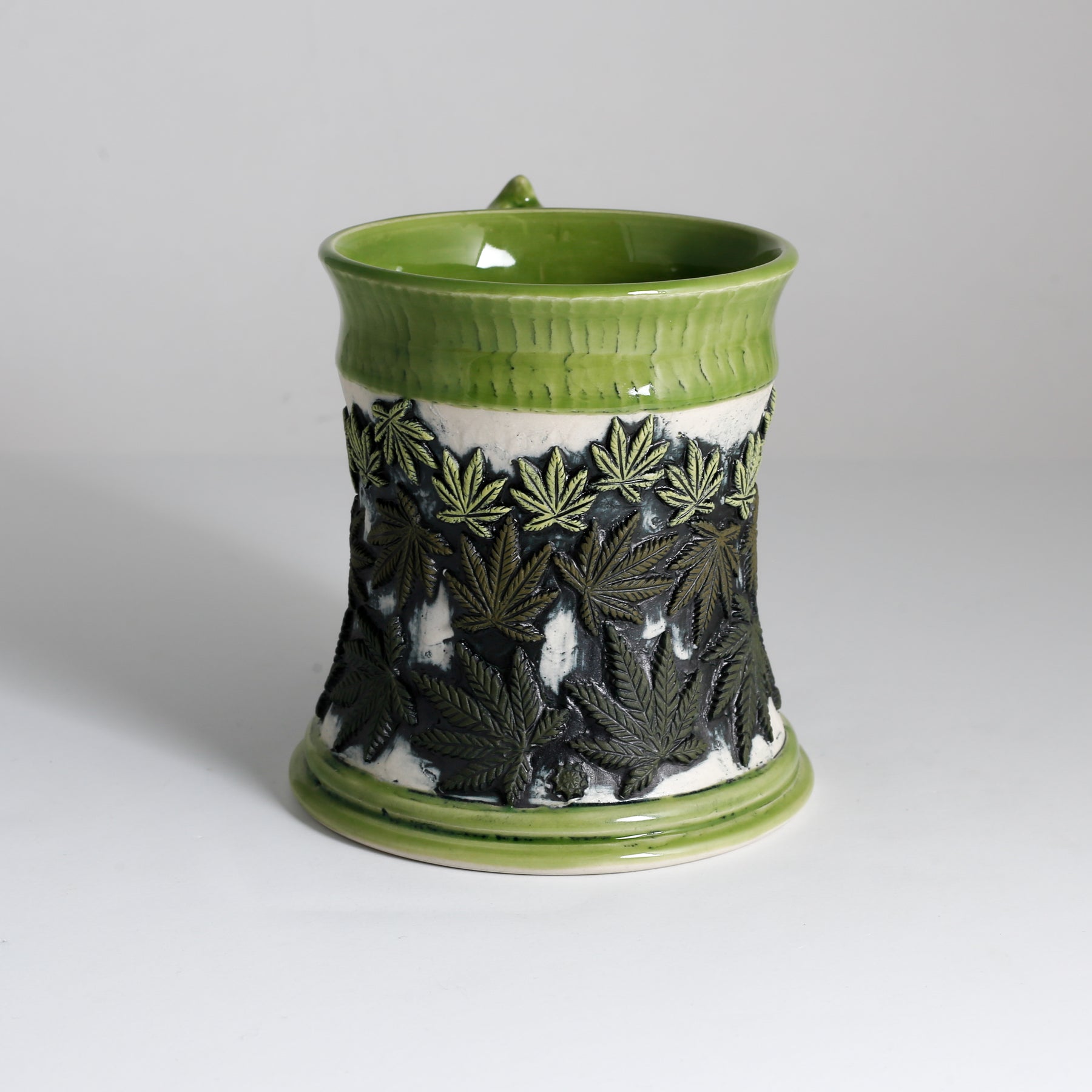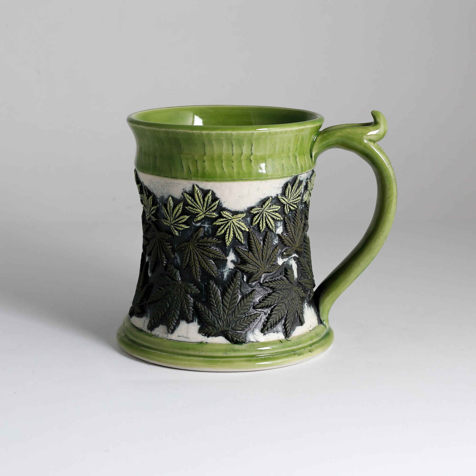 Stein, Porcelain with green porcelain sprigs - Green liner glaze.
