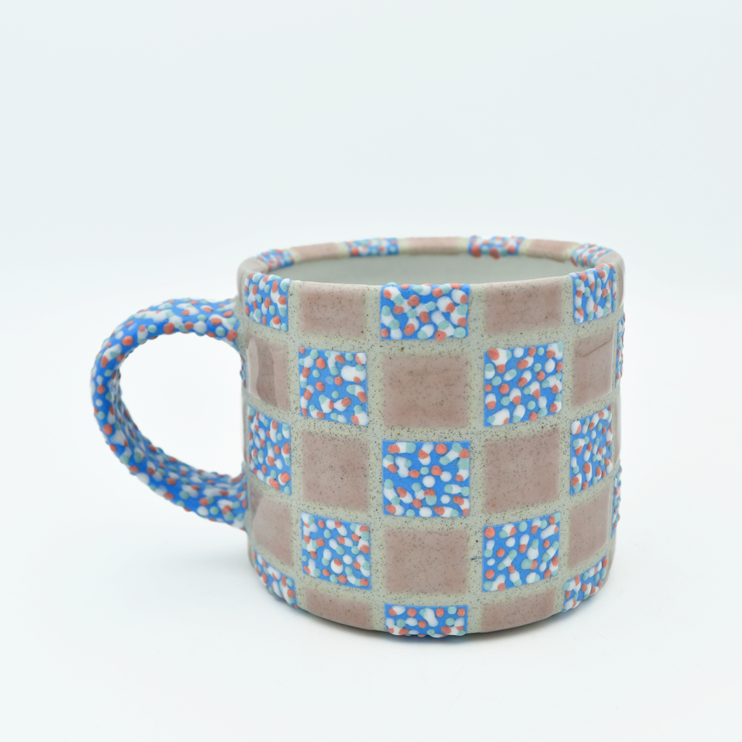 Blue Dot & Pink Glaze Grid Mug (Regular) - Sam Knopp