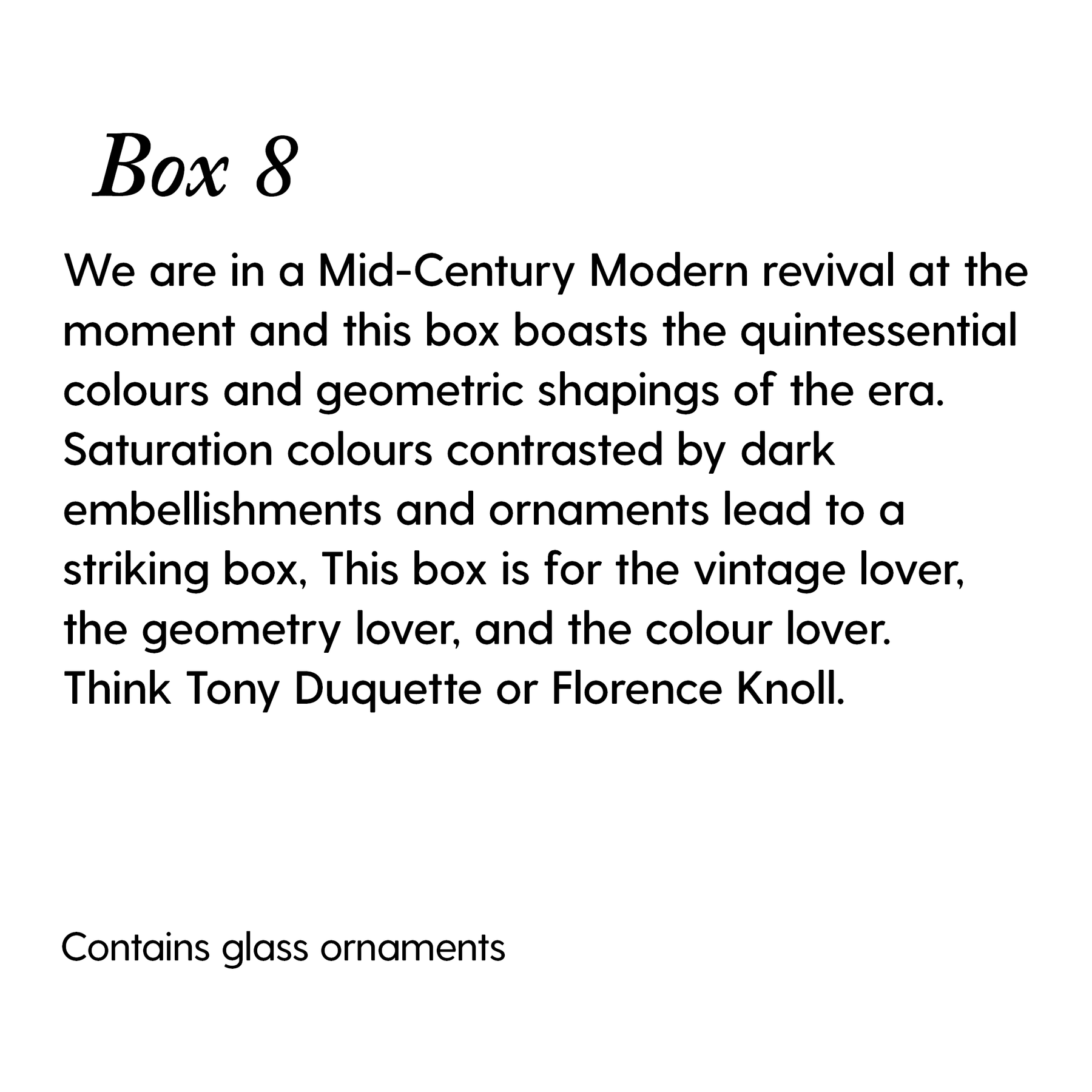 There is a minimum of 10 ornaments in each box, for more information on each box, view the image descriptions.