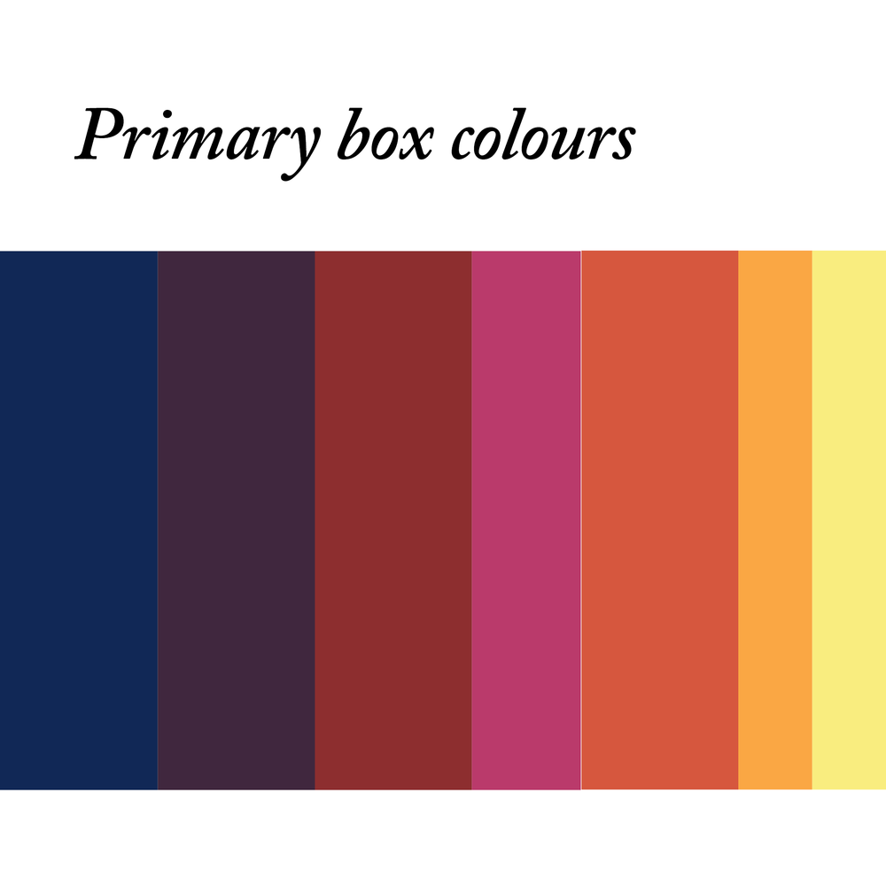 One of three boxes, the $550 boxes are designed to compliment collections that already exist, or to finish off a collection that is already in the works. These boxes are cohesive and adhere to a theme and colour way. Each piece in this box is glass blown.