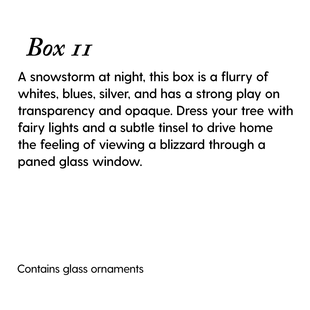 There is a minimum of 10 ornaments in each box, for more information on each box, view the image descriptions.