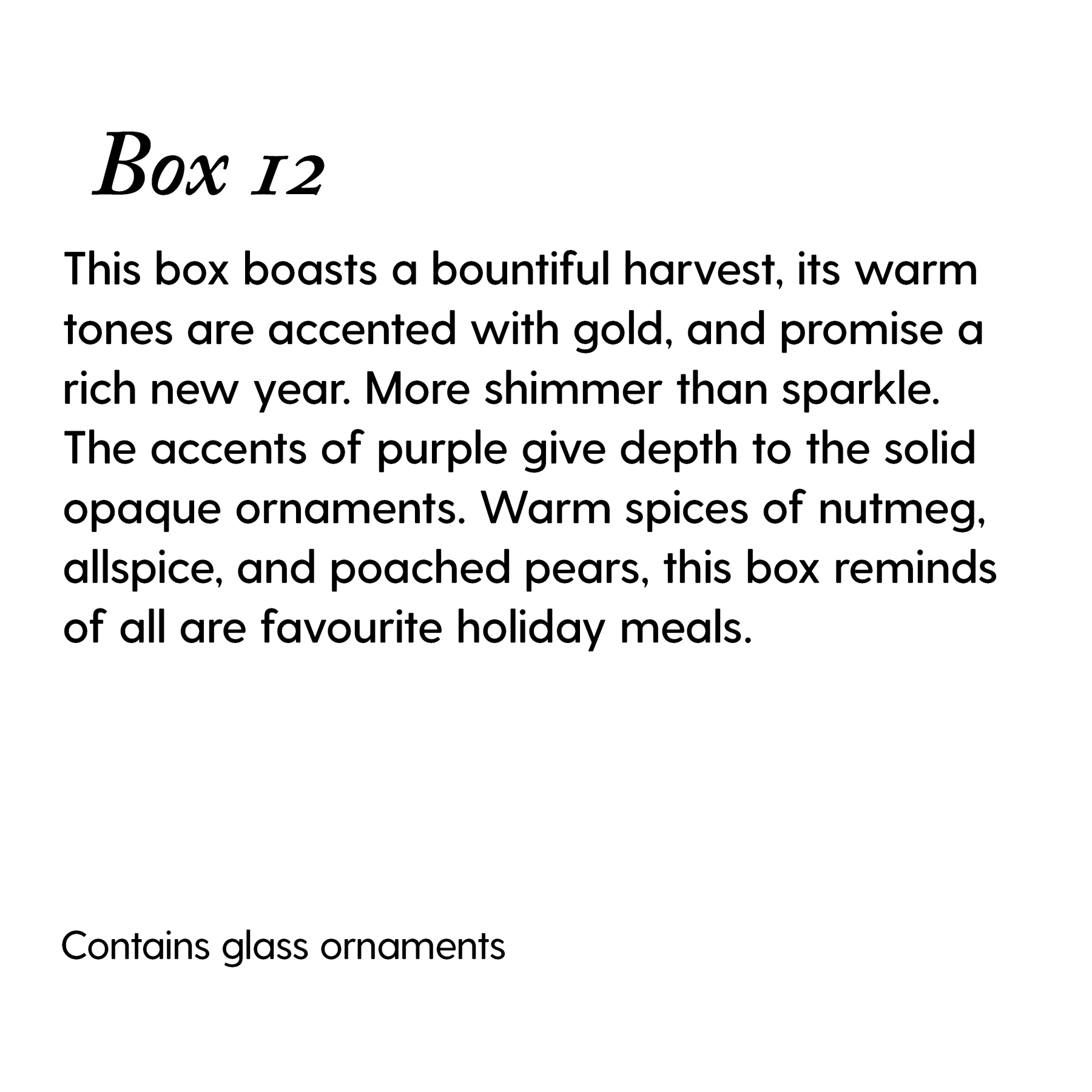 There is a minimum of 10 ornaments in each box, for more information on each box, view the image descriptions.